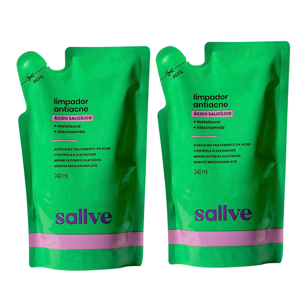 Sallve Refil Gel Espuma Limpador Facial Antiacne Kit com 2 Unidades