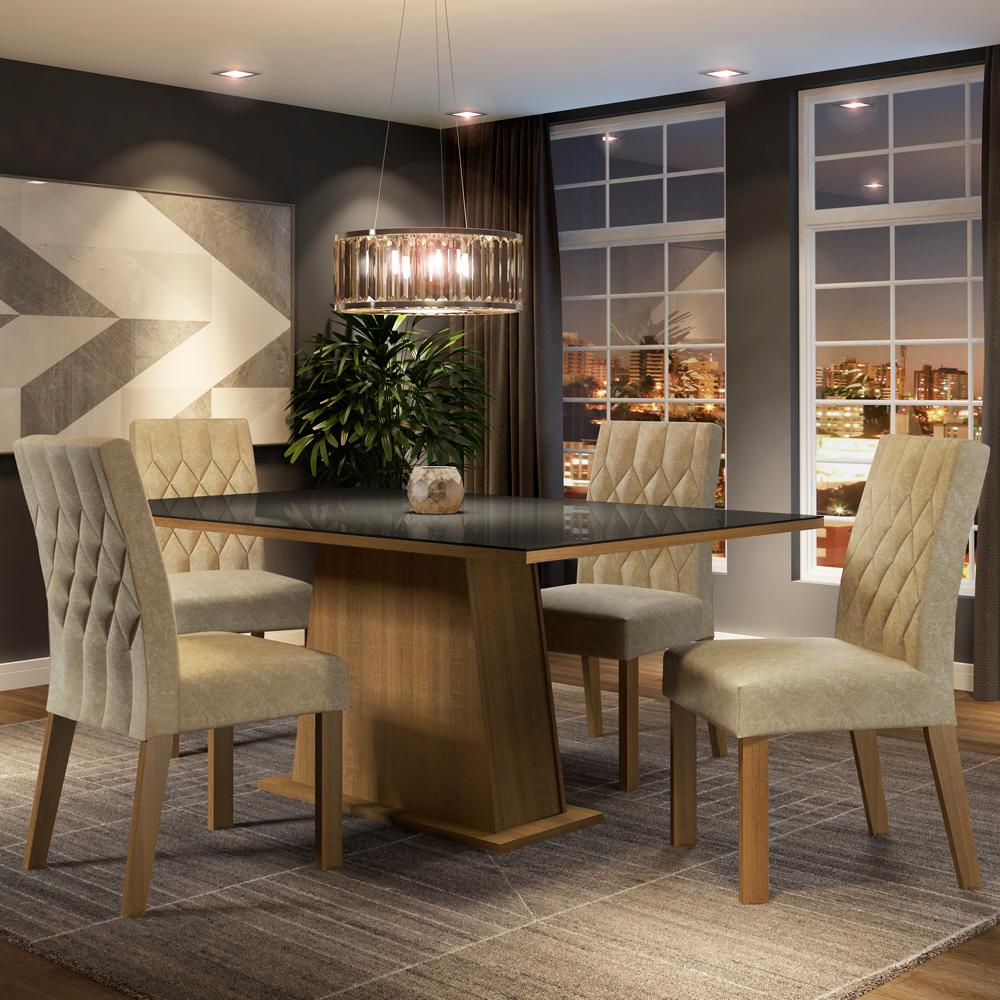 Conjunto Sala de Jantar Mesa Tampo de Vidro 4 Cadeiras Harper Madesa