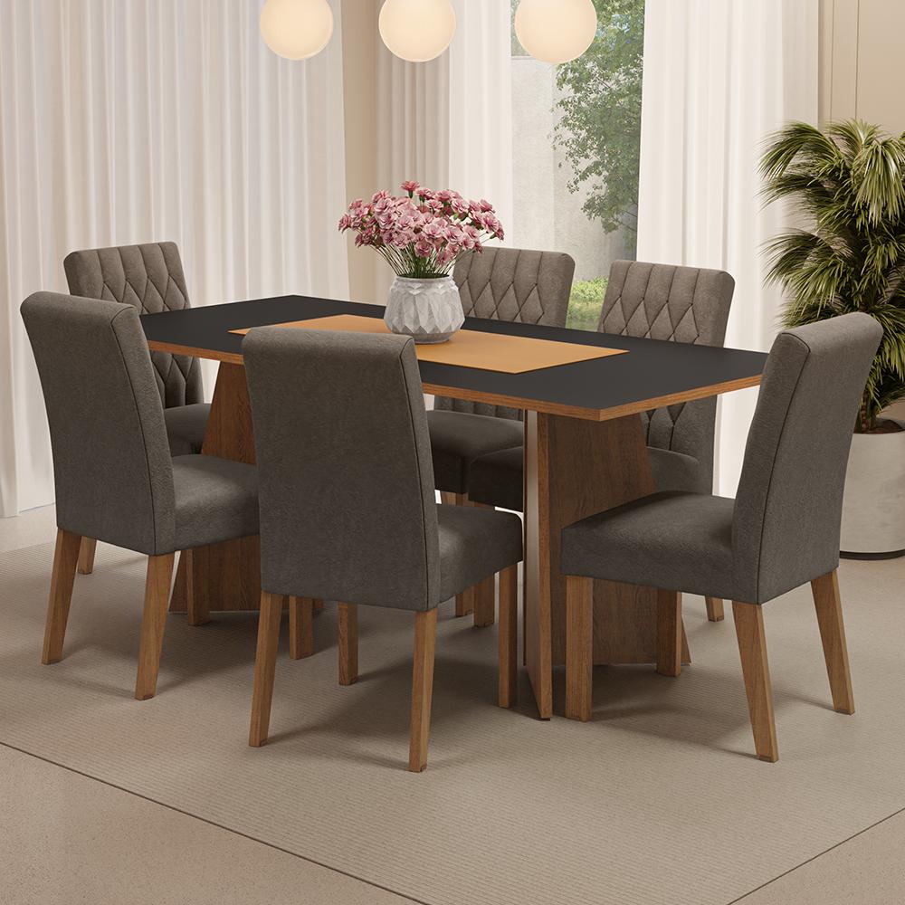Conjunto Sala de Jantar Mesa Tampo de Madeira 6 Cadeiras Madison Madesa