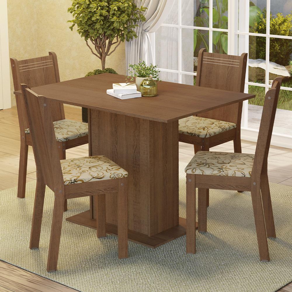 Conjunto Sala de Jantar Lexy Madesa Mesa Tampo de Madeira com 4 Cadeiras - Rustic/Floral Lírio Bege