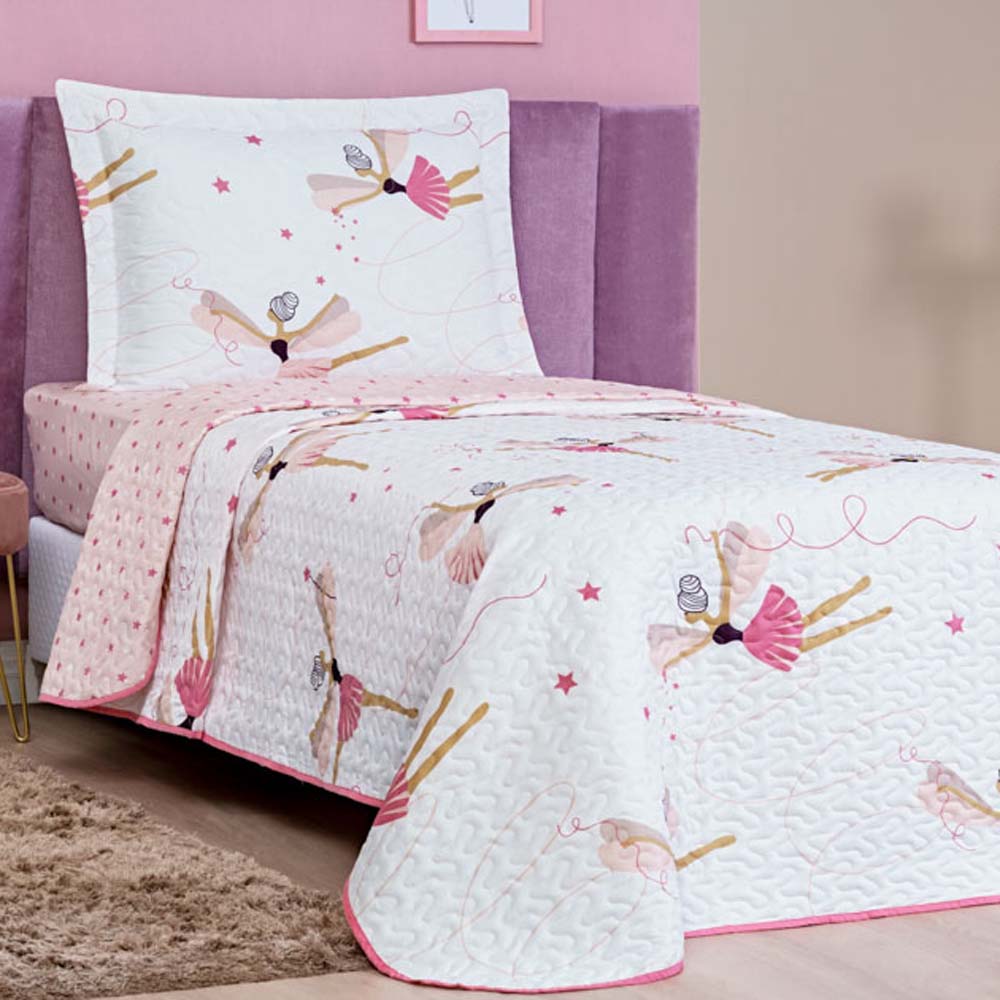 Kit Cobre Leito Colcha Solteiro Infantil Fantasy Dupla Face Microfibra 2 Peças - Bailarina - Branco