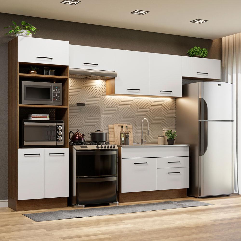 Armário de Cozinha Completa 300 cm Crema Nice Madesa 01