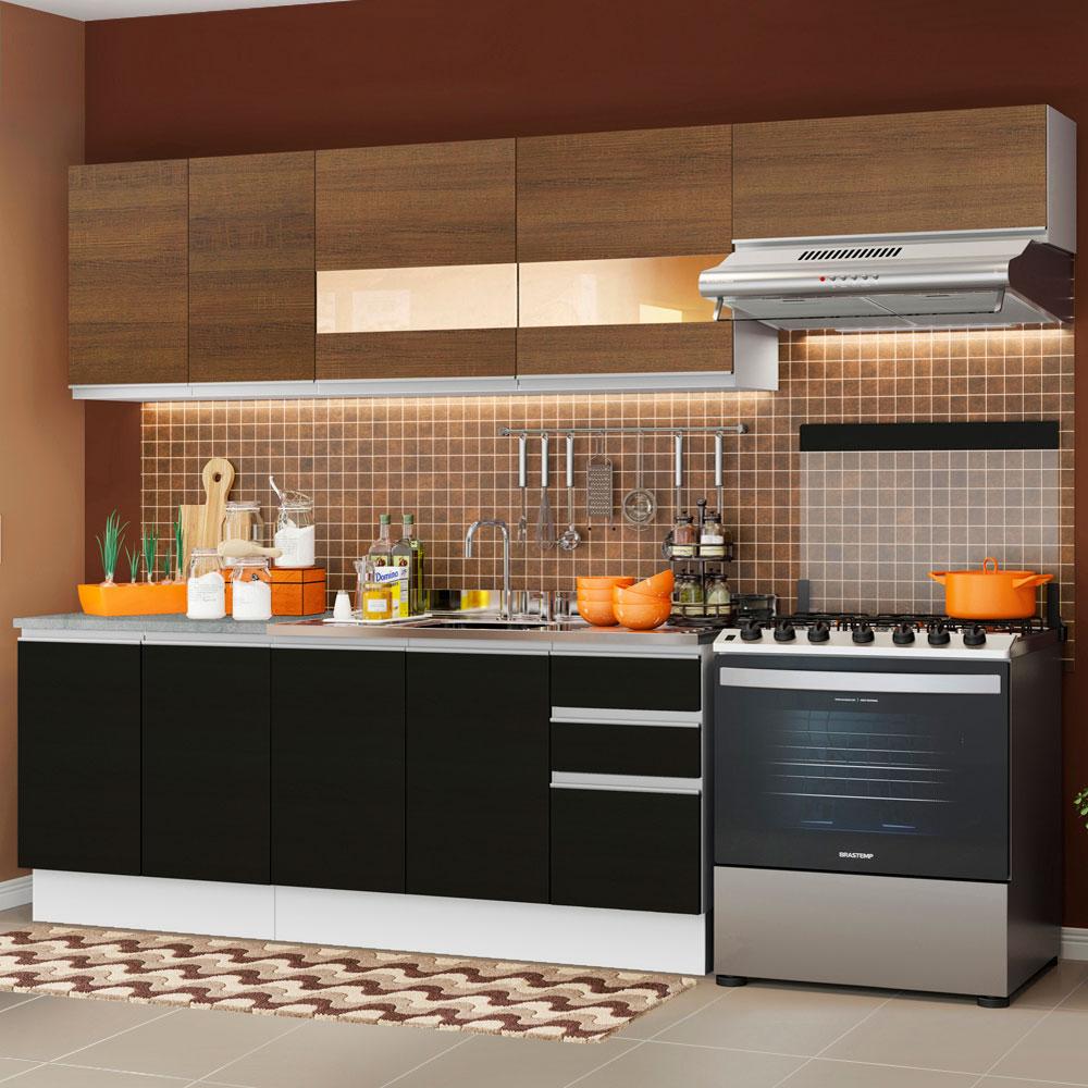Armário de Cozinha Completa de Canto 349cm Branco/Preto Glamy Madesa 07