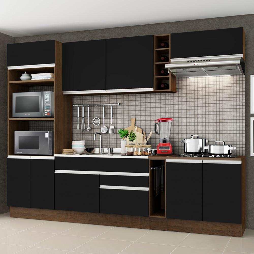Armário de Cozinha Completa 290cm Rustic/Preto Agata Madesa 01