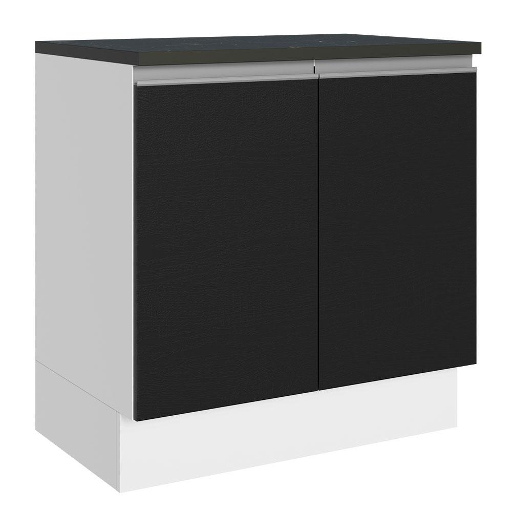 Balcão Armário de Cozinha 100% MDF 80 cm 2 Portas Branco/Preto Acordes Madesa