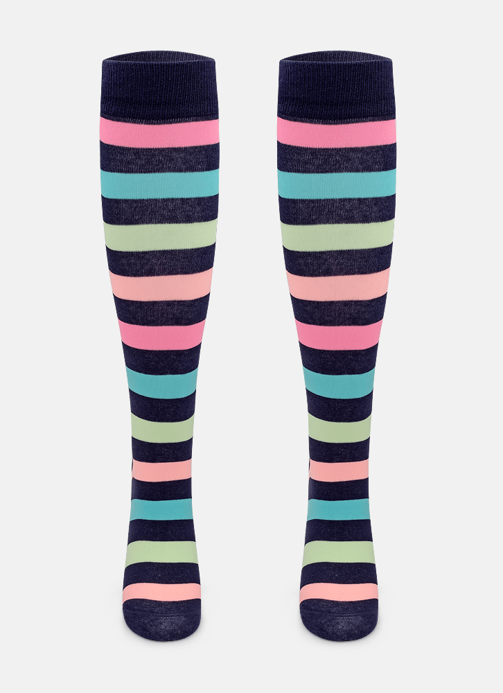 Meia Cano 3/4 Feminina Listrada Colorida