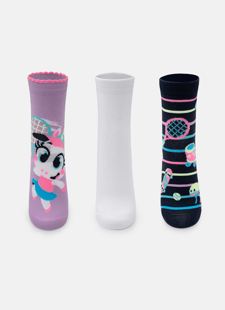 Kit com 3 Meias Cano Curto Feminina Unicórnio Tênis