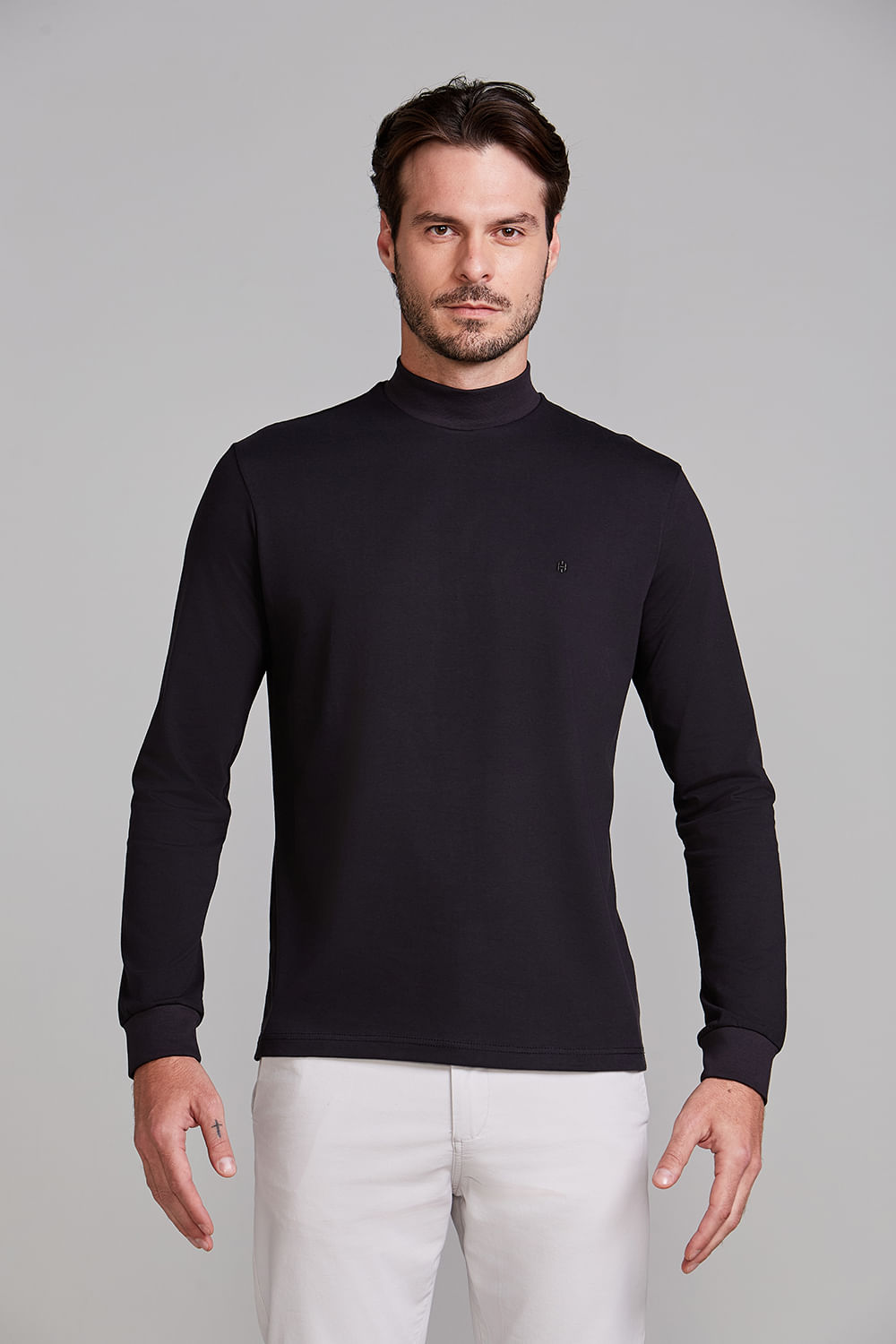 Camiseta Manga Longa Malha Slim Fit - Preto