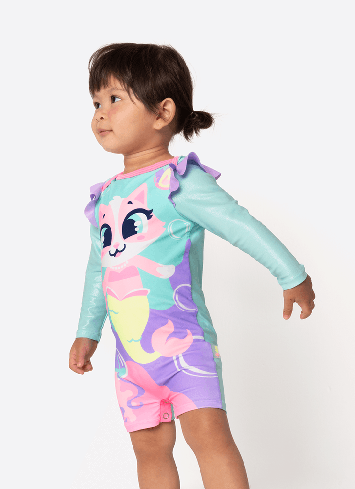 Macacão Com Proteção Solar Bebê Menina Gata Sereia