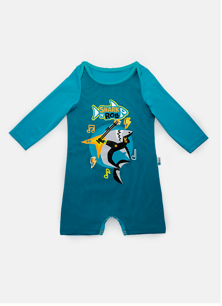 Macacão Manga Longa Microfibra Bebê Menino Tubarão Rockstar