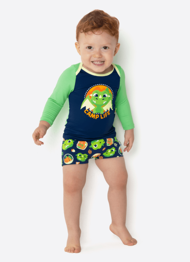 Camiseta Com Proteção Solar Bebê Menino Dragão Camping