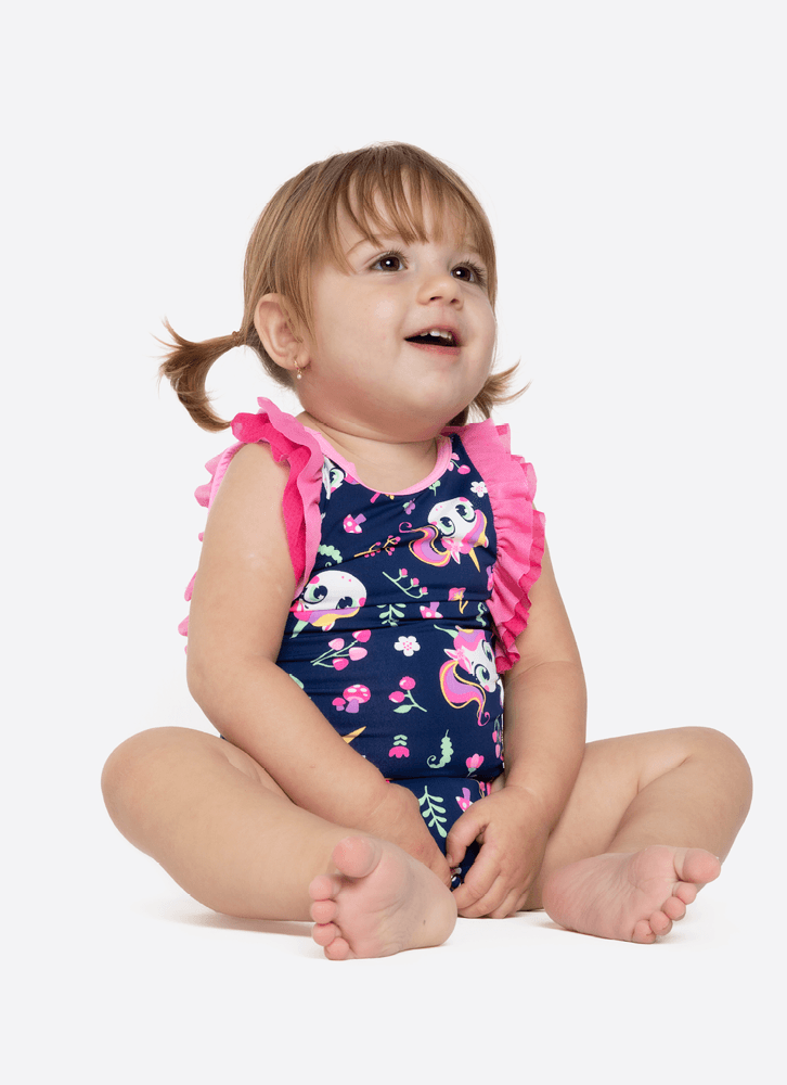 Maiô Com Proteção Solar Bebê Menina Unicórnio Encantado