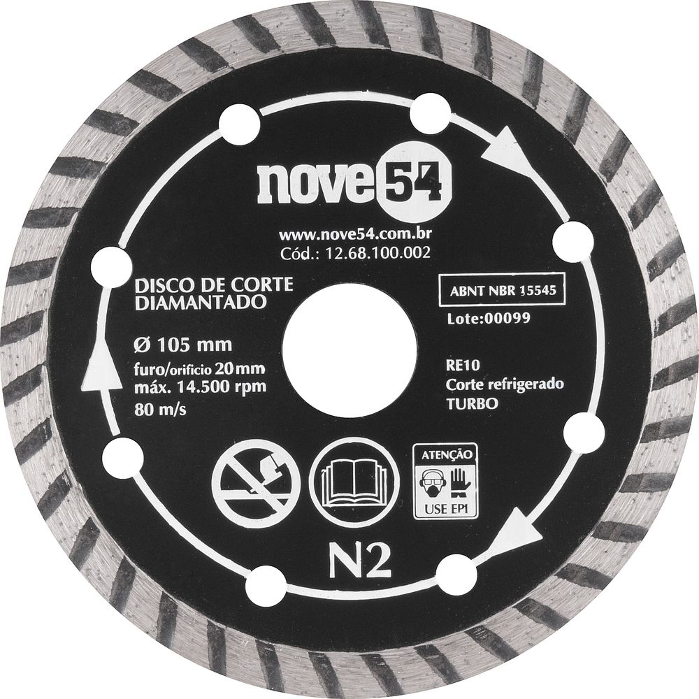 Disco diamantado 105mm turbo furo 20mm n2 - Nove54