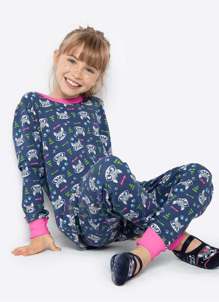 Pijama Manga Longa Menina Viscolycra Premium Família Guaxinim