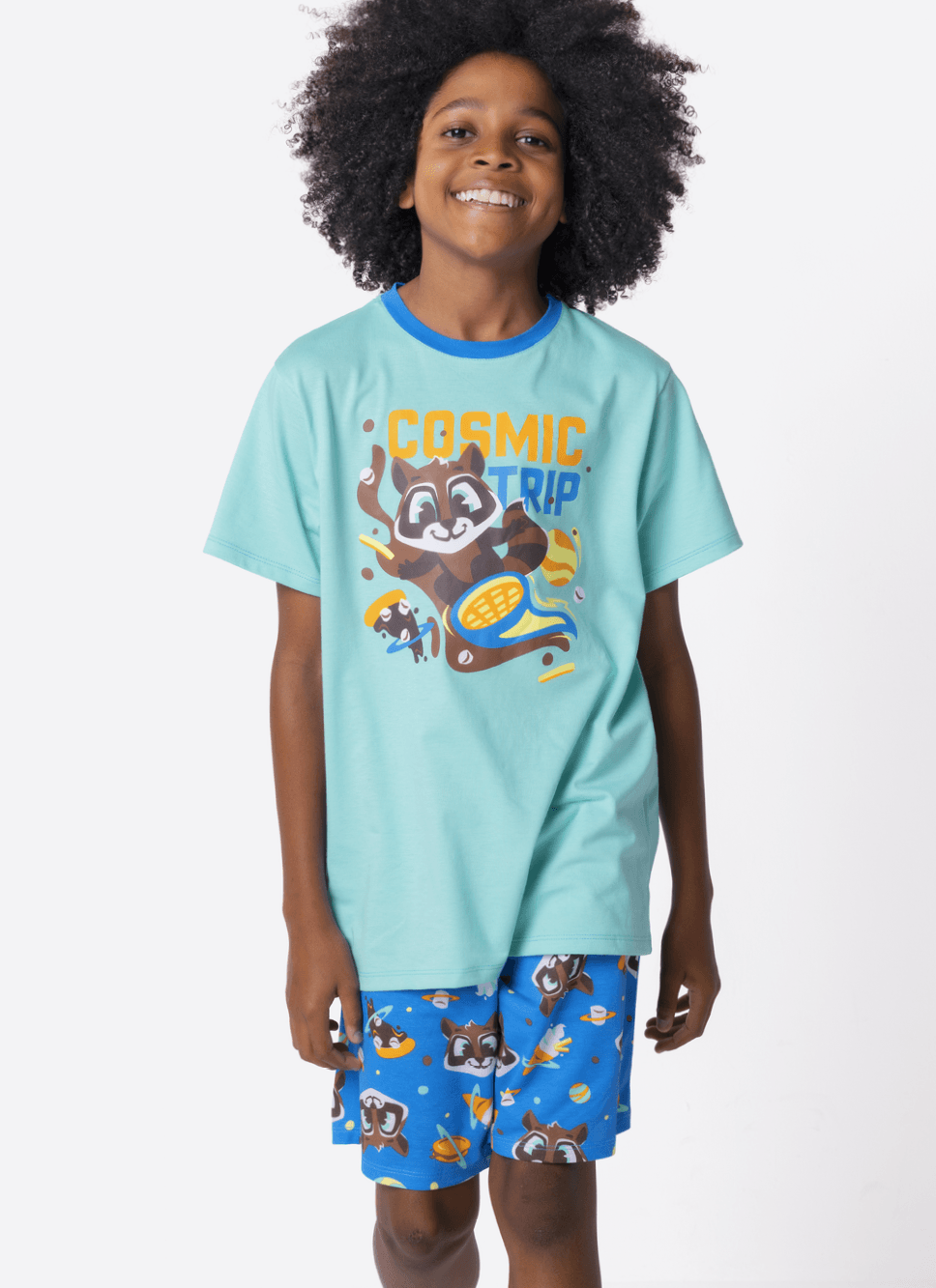 Pijama Manga Curta Algodão Menino Teen Guaxinim Chocolate