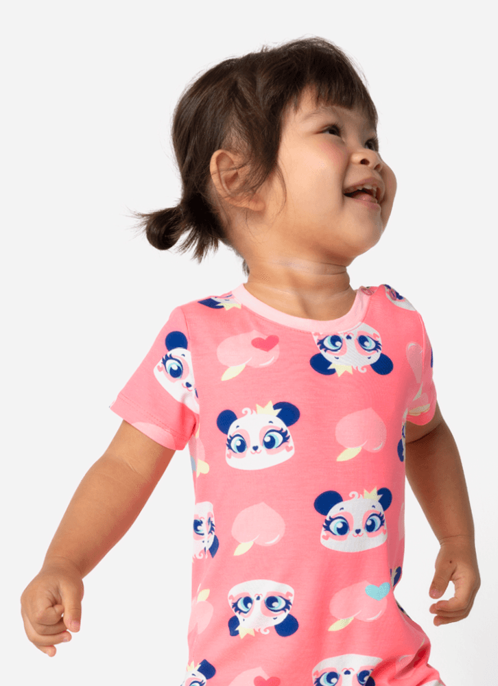 Macacão Manga Curta Viscolycra Bebê Menina Panda Romântico
