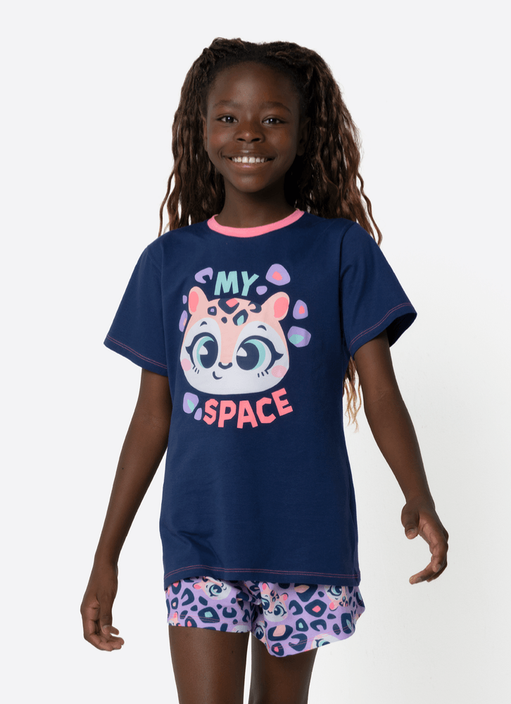 Pijama Manga Curta Algodão Menino Teen Tigre Camping