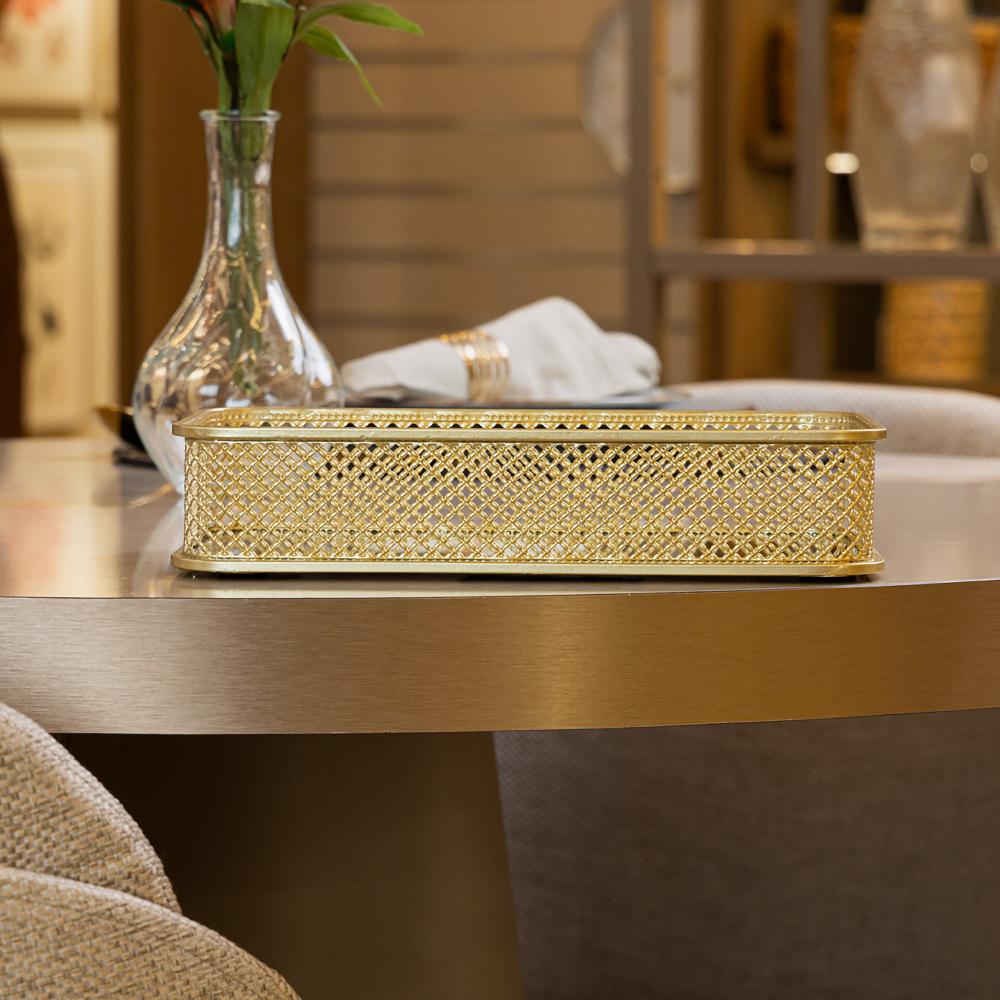 Bandeja Lyor de Metal Dourada com Palha 20cm x 30cm x 3cm