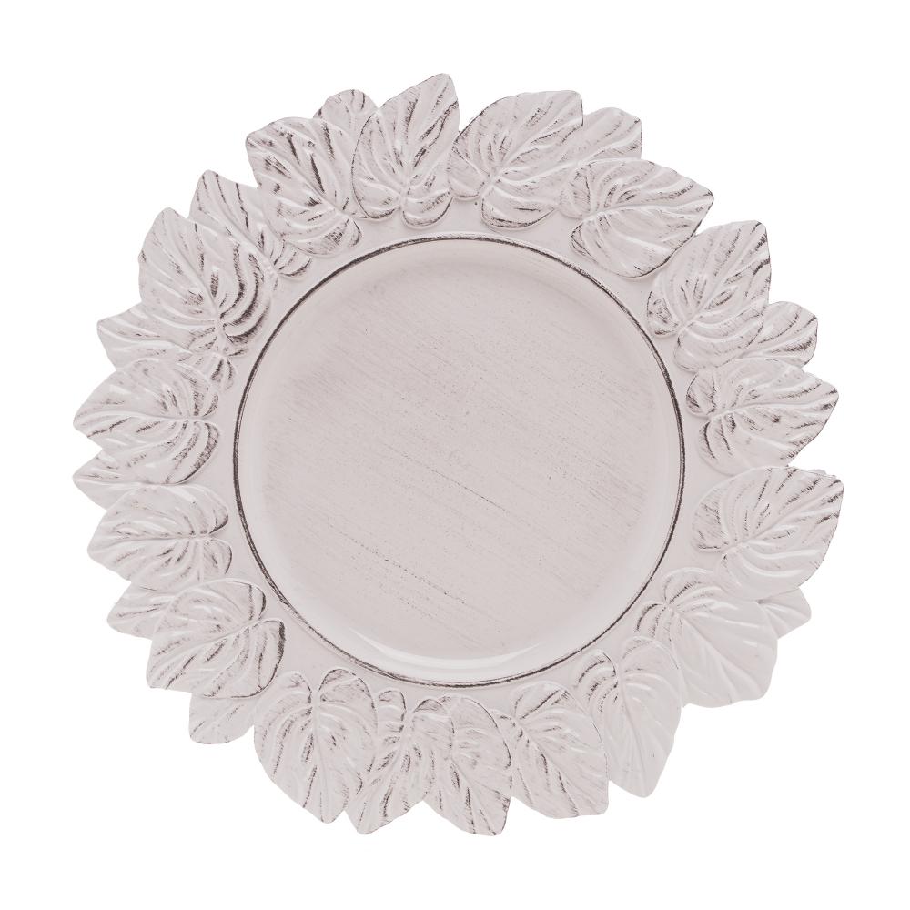 Sousplat Lyor Garden Leaf de Plástico Branco 35cm