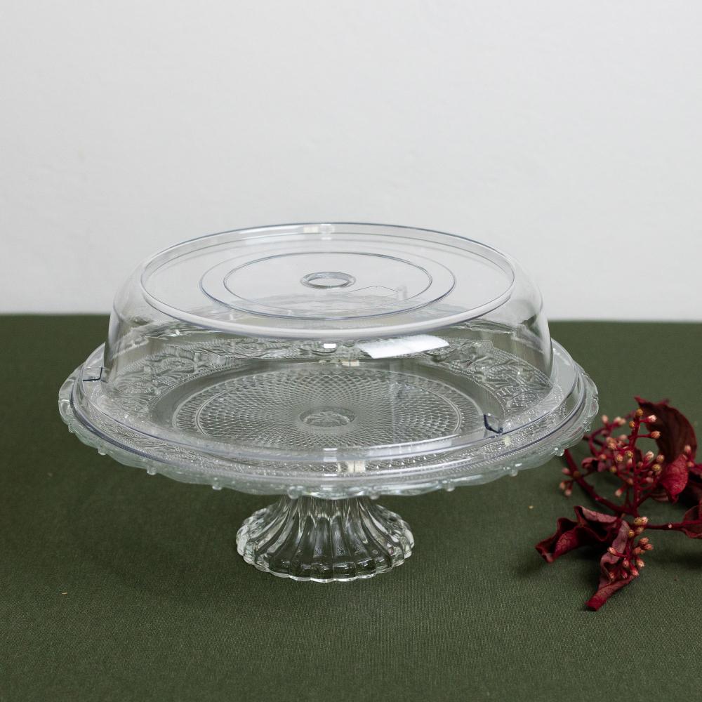 Prato para Bolo Angel de Vidro com Pé e Tampa de Plástico