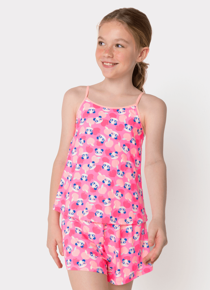 Pijama Regata Microfibra Menina Teen Panda Romântico