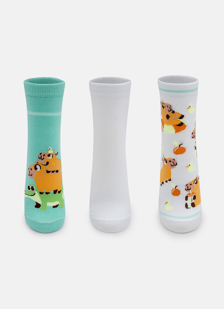 Kit com 3 meias Unissex Teen Capivara Vibes