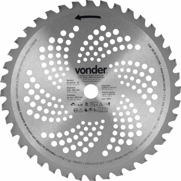 Lâmina Circular p/ Roçadeira c/ Videa 255x20,0x40 Vonder