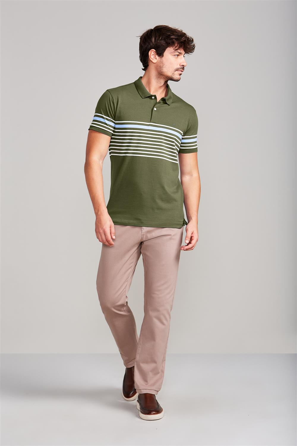 Camisa Polo Malha Slim Fit - Verde Azeitona / Verde Folha