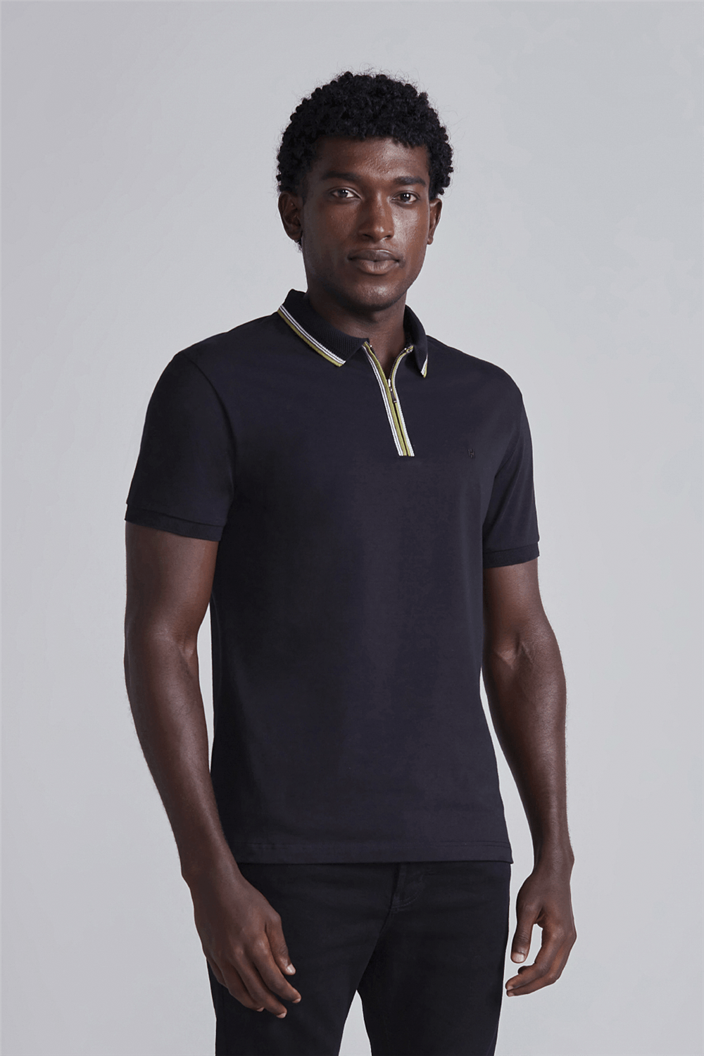 Camisa Polo com Zíper Malha Slim Fit - Preto