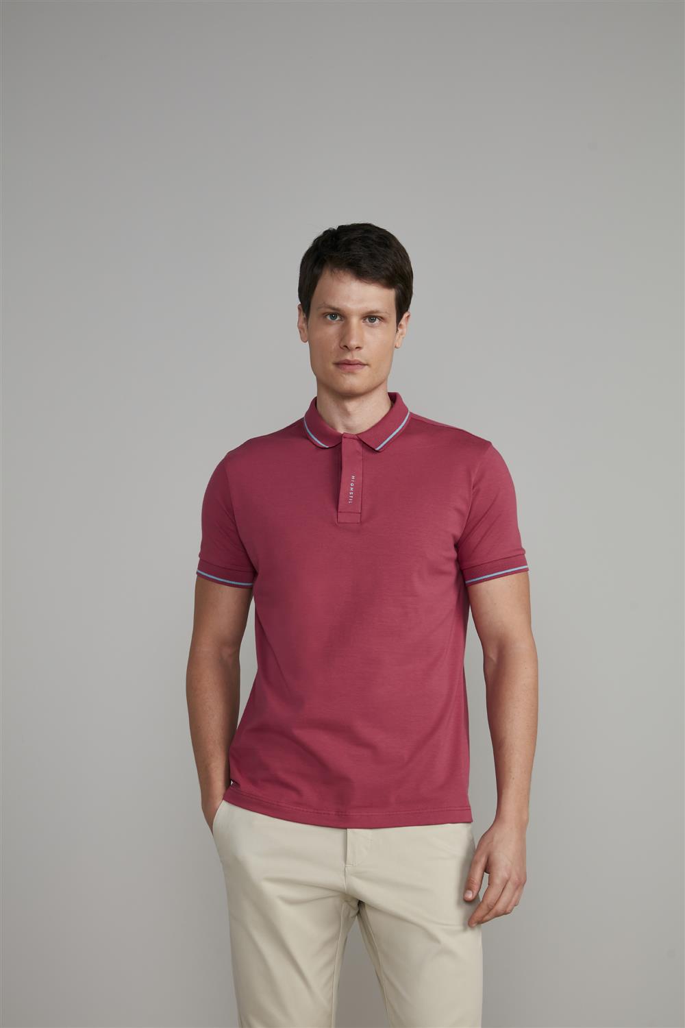Polo Manga Curta Comfort Pima - Vermelho Carmim / Branco