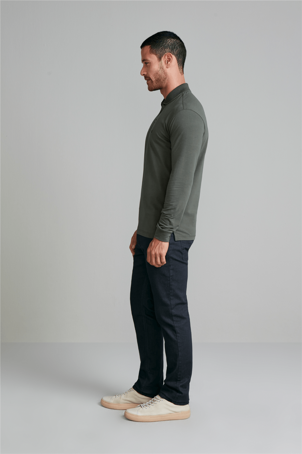 Camisa Polo Manga Longa Malha Slim Fit - Verde Escuro