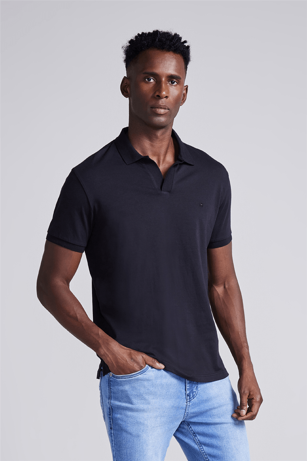 Polo Manga Curta Comfort Malha Básica - Azul Topázio