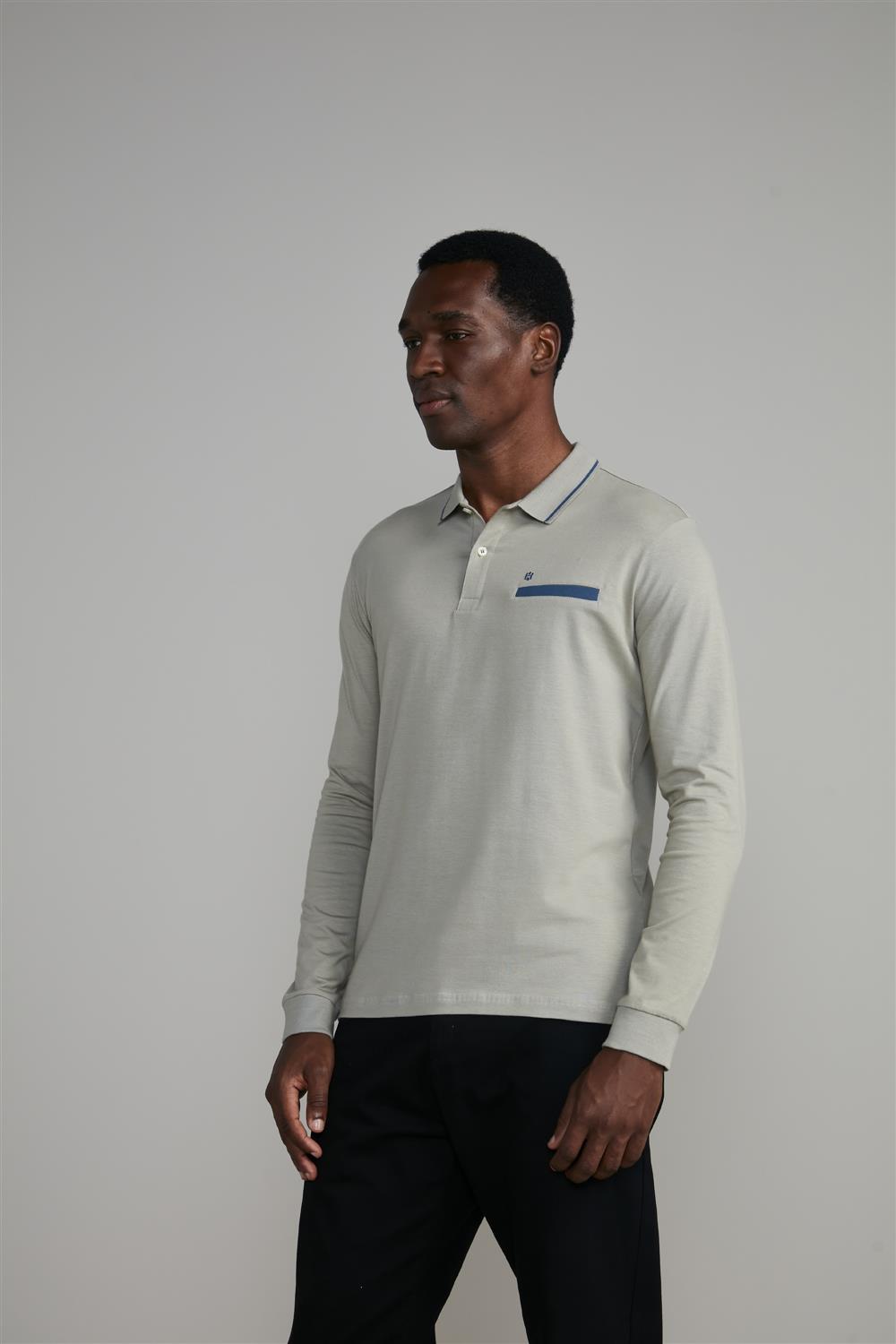 Camisa Polo com Bolso Piquet Comfort - Cinza Chumbo / Verde Malva