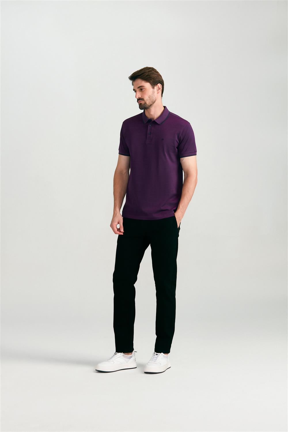 Polo Manga Curta Pima Slim Fit - Azul Turquesa / Branco