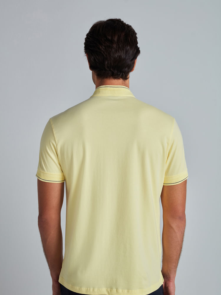 Polo Manga Curta com Zíper Básica Malha Slim Fit - Amarelo Manteiga