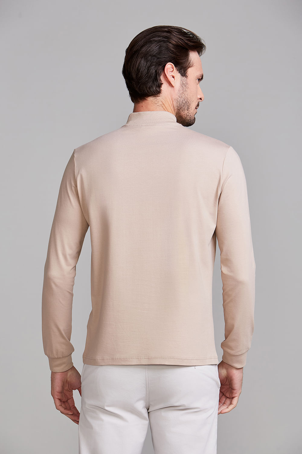 Tricot Gola 1/2 Zíper Slim Fit - Marrom Café