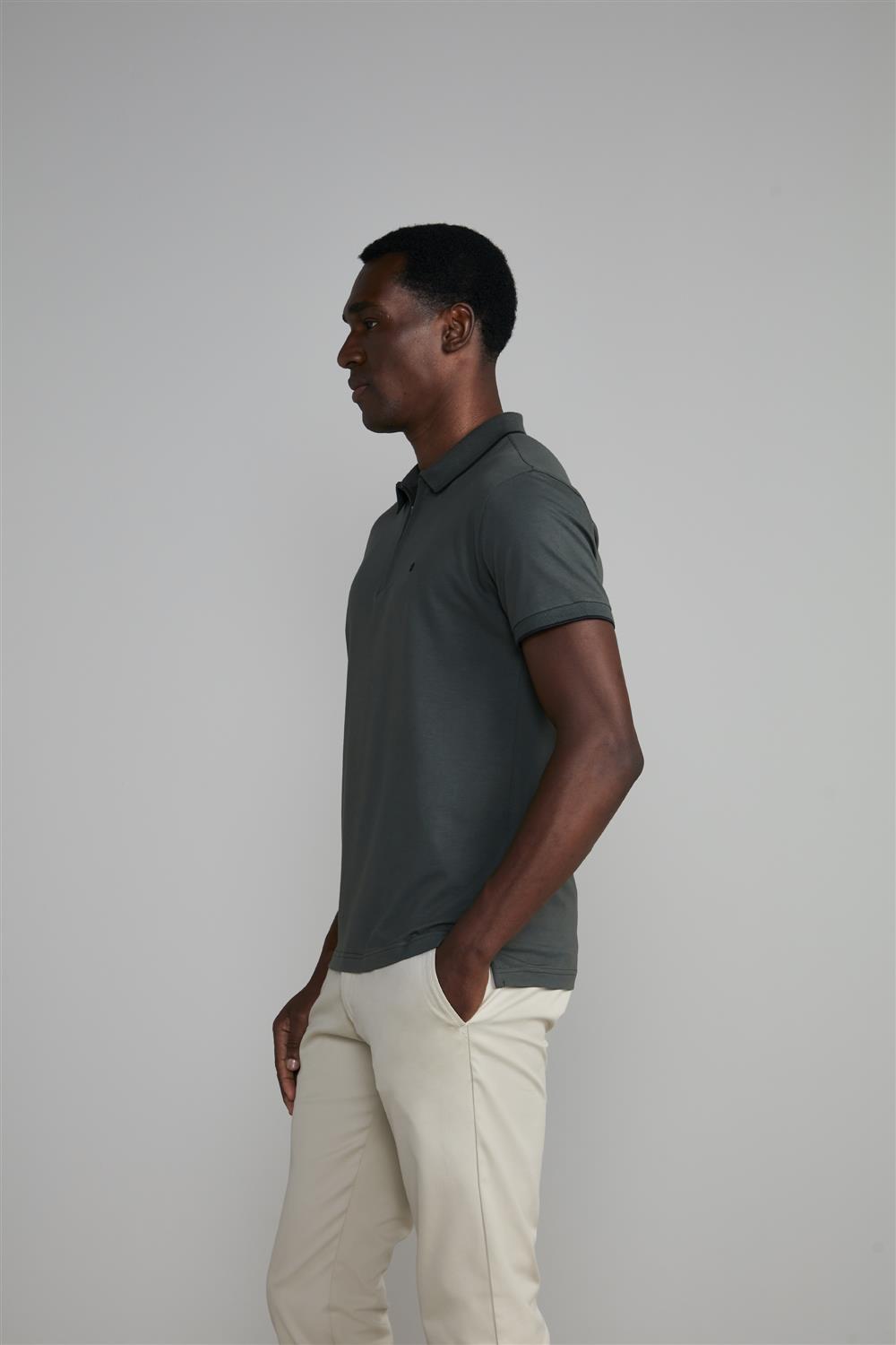 Polo Manga Curta com Zíper Slim Fit - Verde Escuro