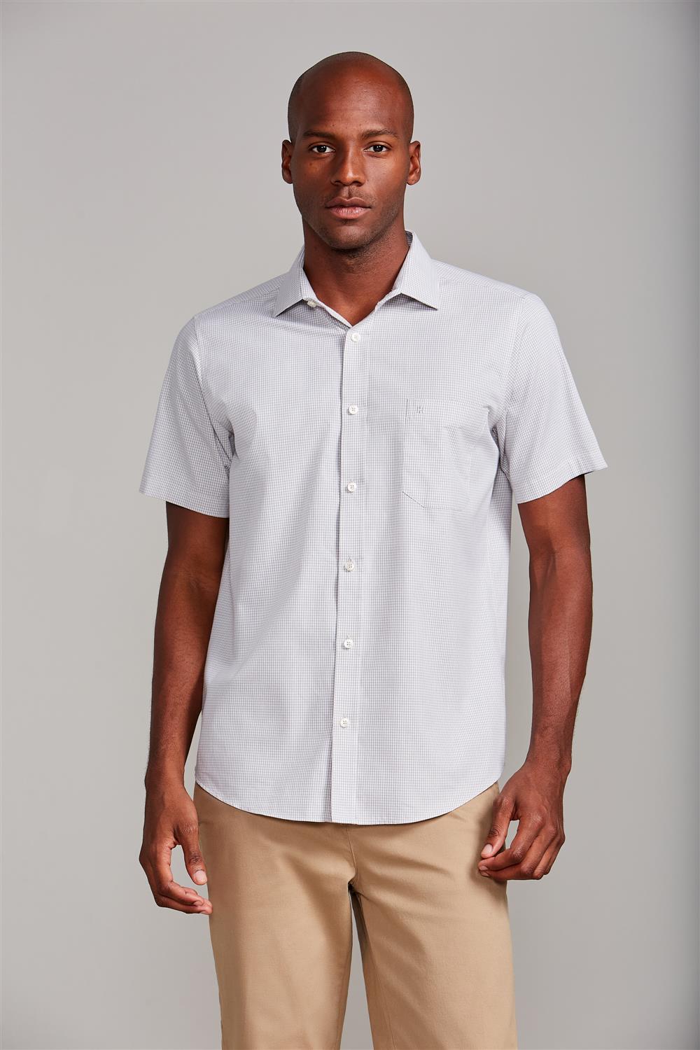 Camisa Manga Curta com Bolso Comfort - Cinza Claro