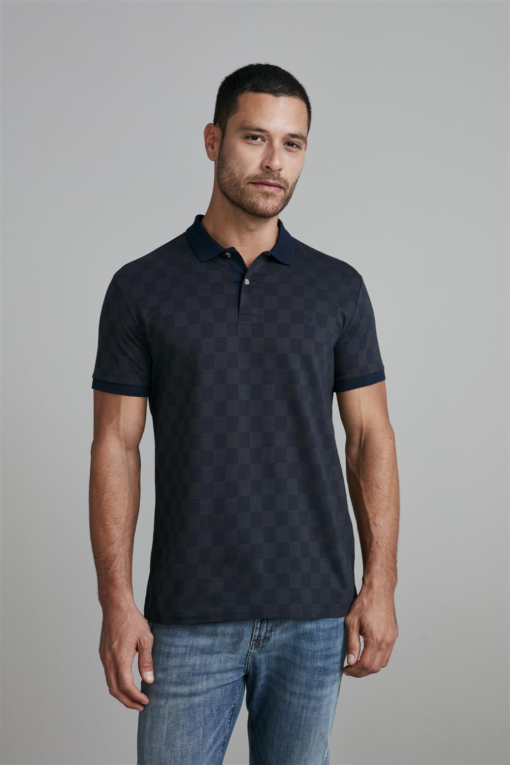 Camisa Polo Jacquard Slim Fit - Azul Marinho / Cinza Chumbo