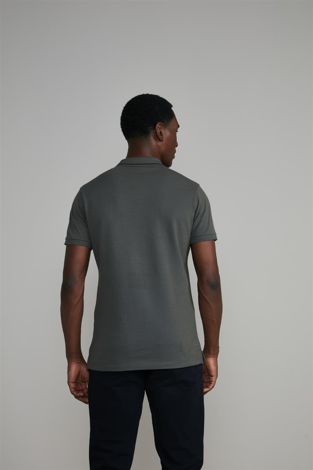 Camisa Polo Malha Slim Fit - Preto / Cinza Chumbo