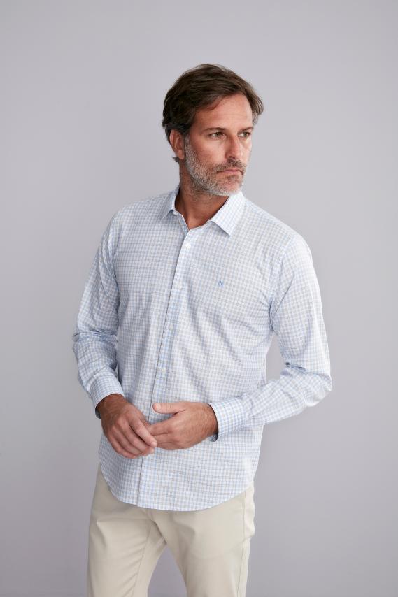 Camisa Manga Longa Xadrez Slim Fit - Azul Medio