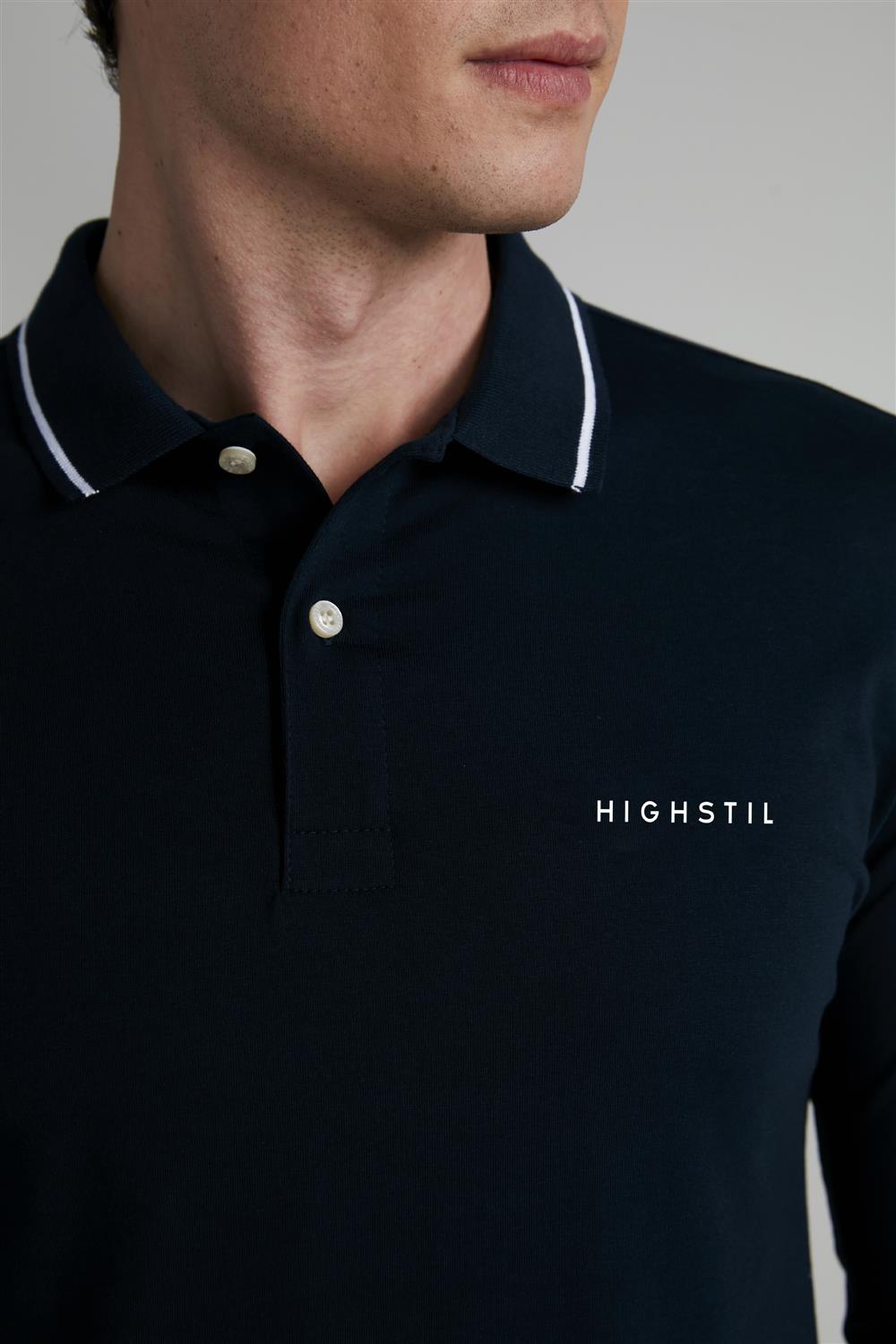 Camisa Polo Manga Longa Malha Slim Fit - Azul Marinho