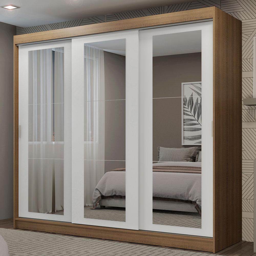 Guarda-Roupa Casal Madesa Istambul 3 Portas de Correr com Espelhos 3 Gavetas - Rustic/Branco