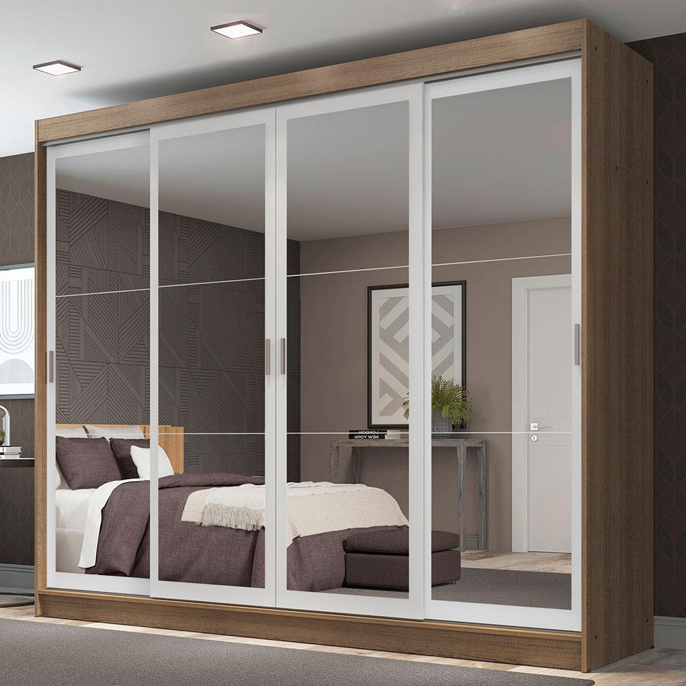 Guarda-Roupa Casal Madesa Austin 4 Portas de Correr de Espelho 3 Gavetas