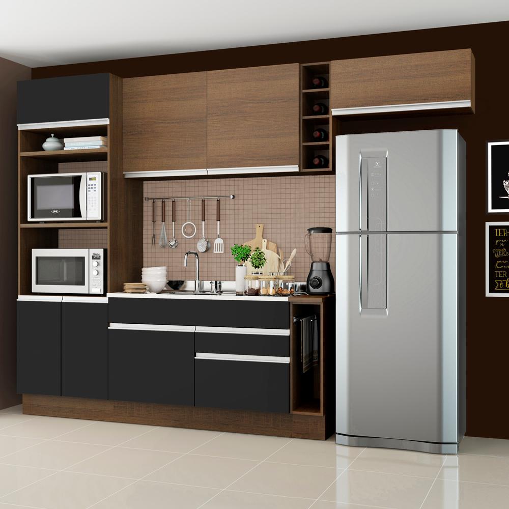 Cozinha Completa Madesa Safira com Armário e Balcão (Sem Tampo e Pia) - Rustic/Preto/Rustic