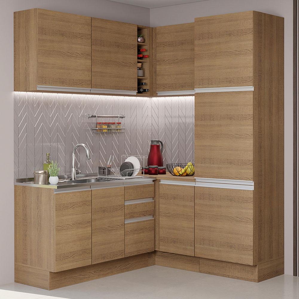 Cozinha Completa de Canto Madesa Glamy 329001 com Armário e Balcão (Sem Tampo e Pia) - Rustic