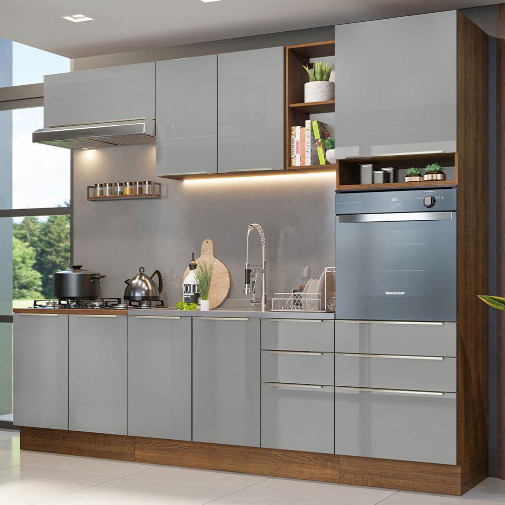 Armário de Cozinha Completa 260cm Branco/Cinza Lux Madesa 08