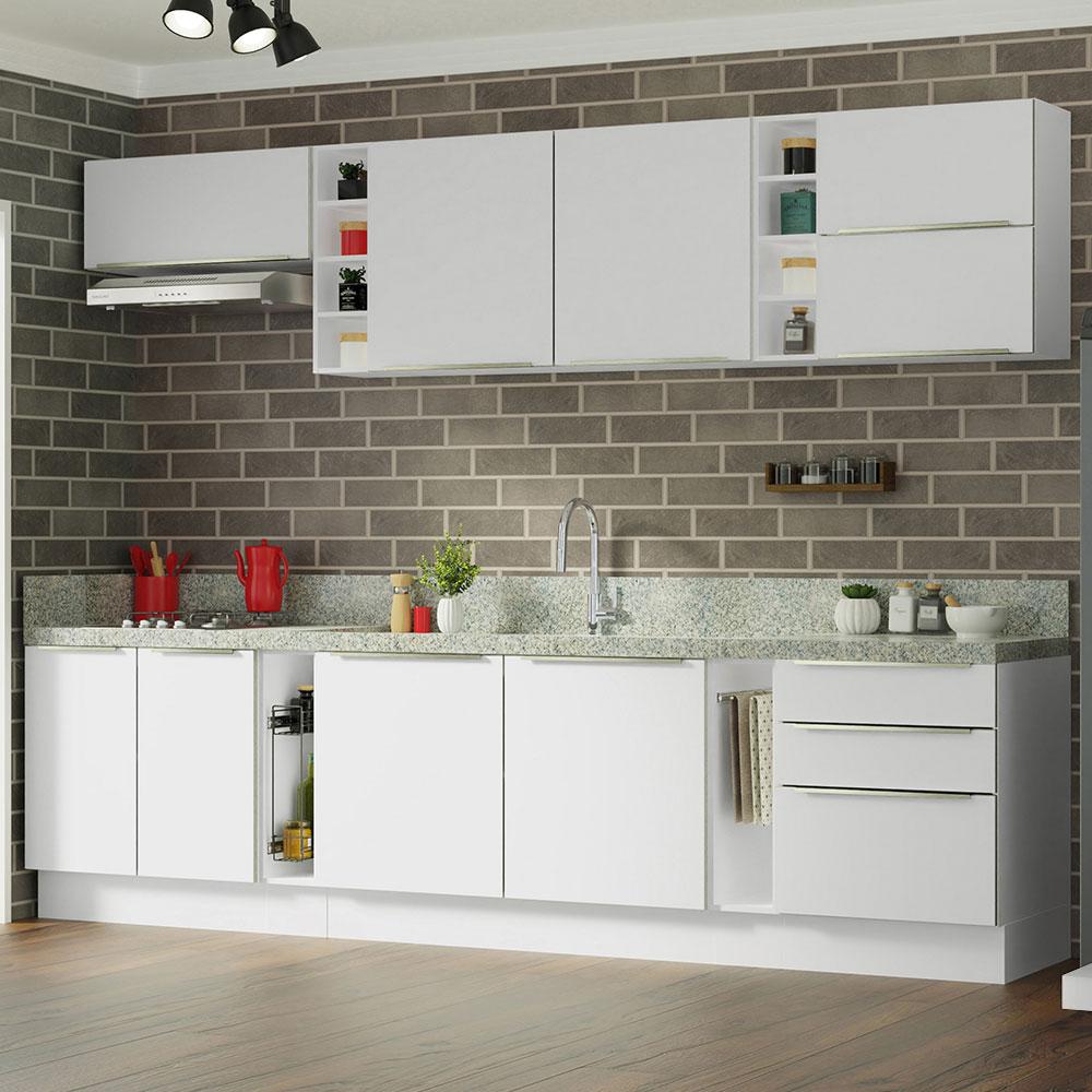 Armário de Cozinha Completa 300cm Branco Veludo Lux da Sabrina Madesa
