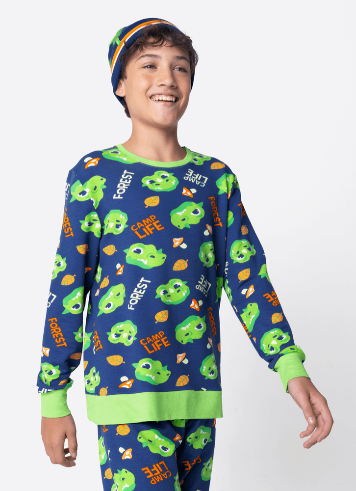 Pijama Manga Longa Ultra Visco Menino Teen Dragão Camping