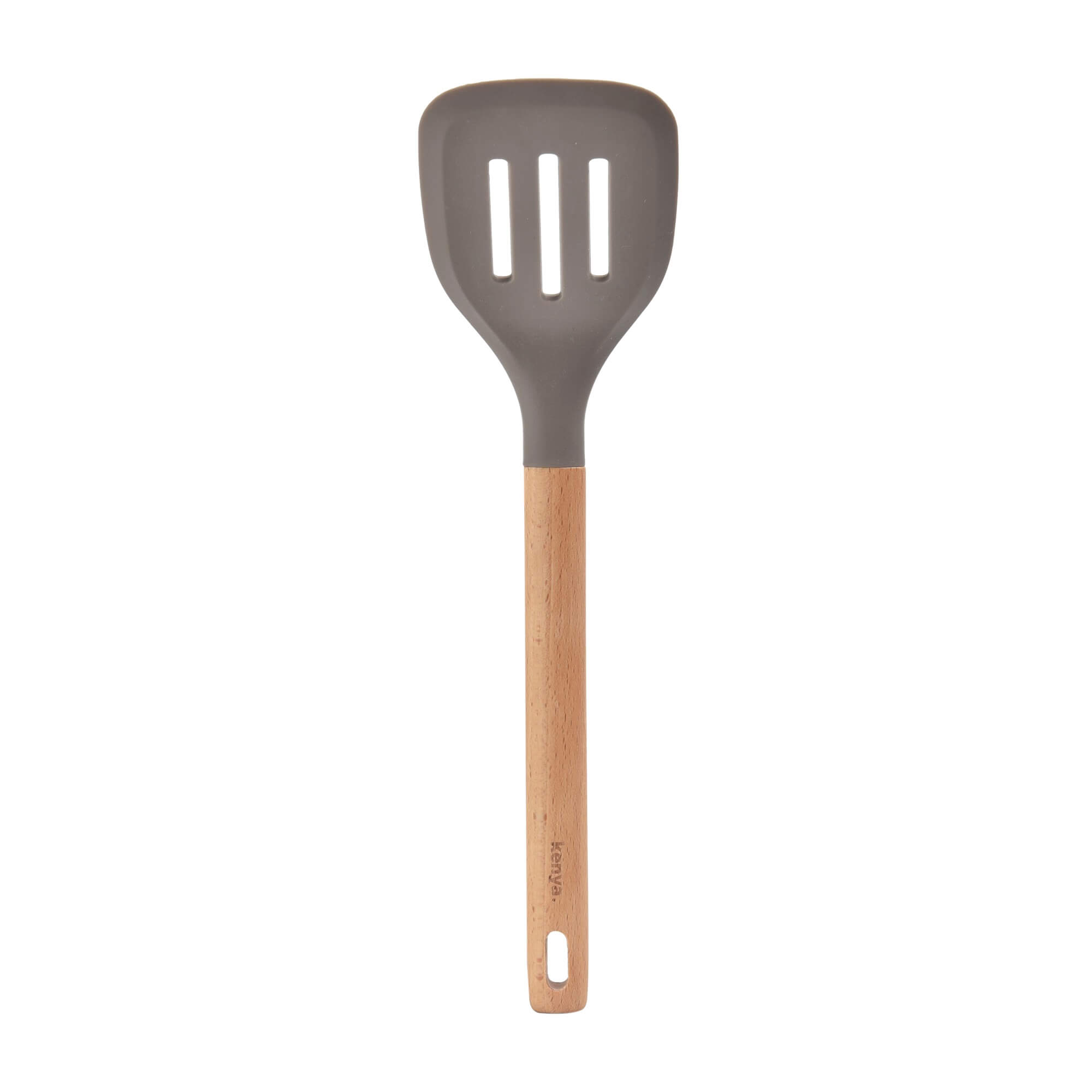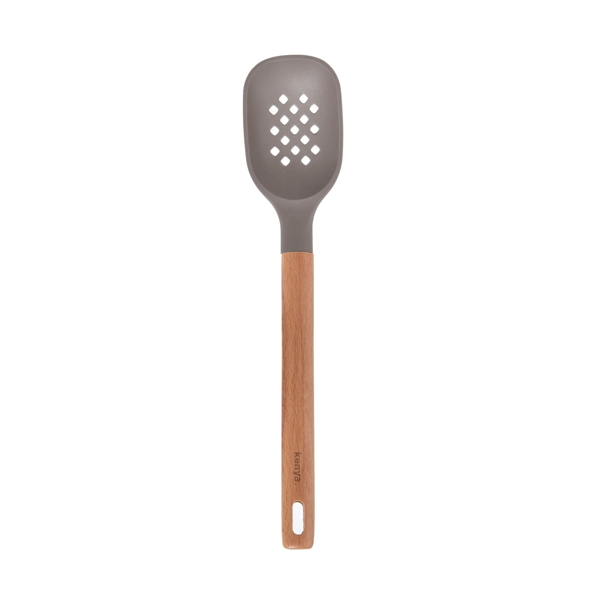 Espátula Vazada de Silicone com Cabo de Madeira Kenya Cinza